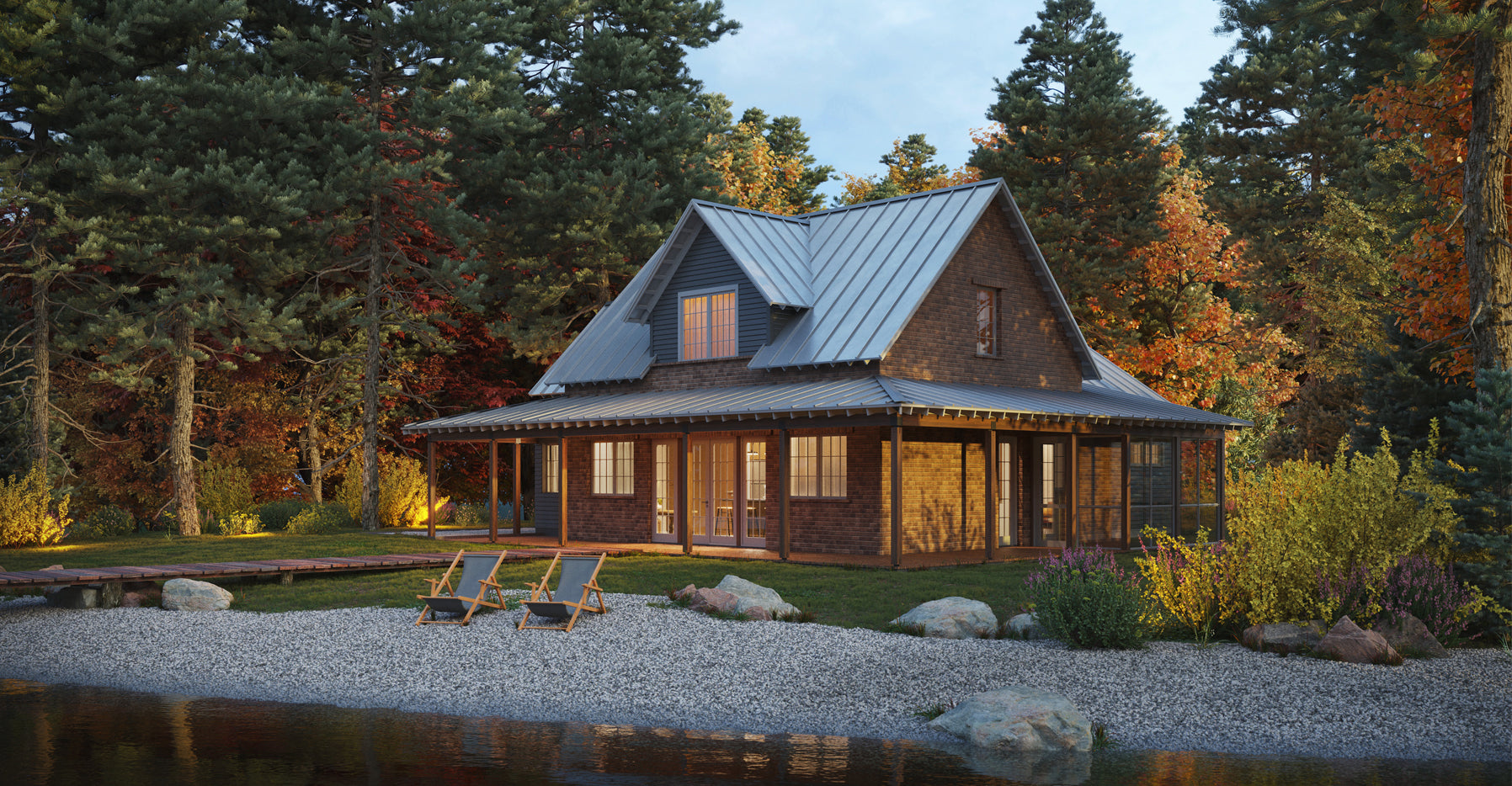 Foundation: Slab on Grade Exterior Walls: 2x6 Roof Pitch: 12:12 Primary Ceiling Height First Floor: 12’-0”, Vaulted Exterior Cladding: Lap Siding, Brick Roof Cladding: Metal